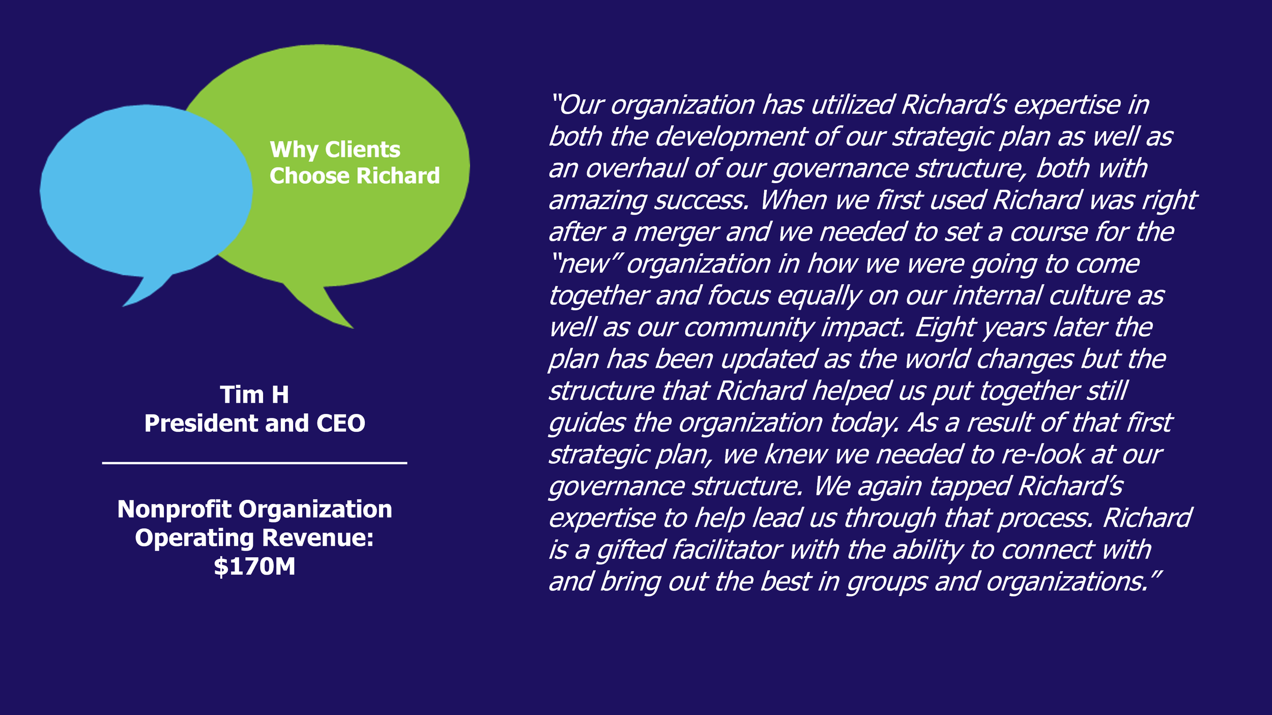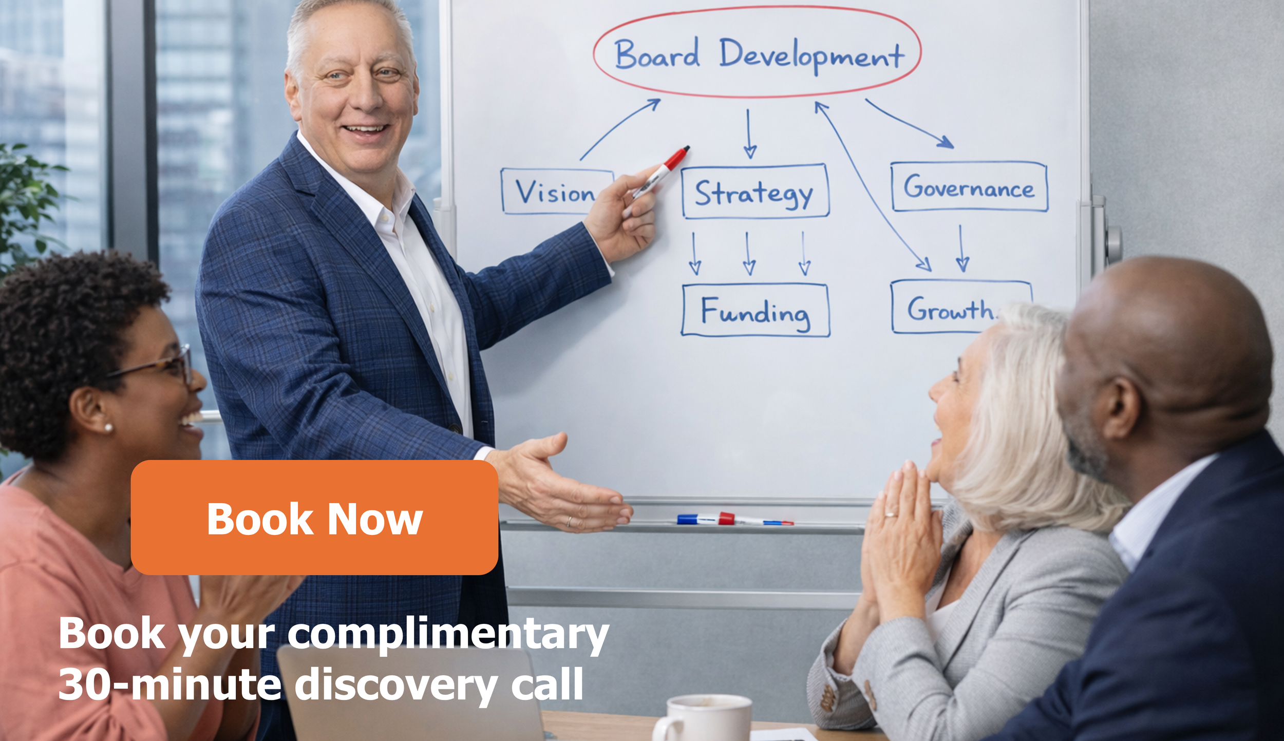 As a certified Advanced Board Consultant from BoardSource, I collaborate with your organization's board leadership and executive leadership to enhance your board's effectiveness through a range of services, including: